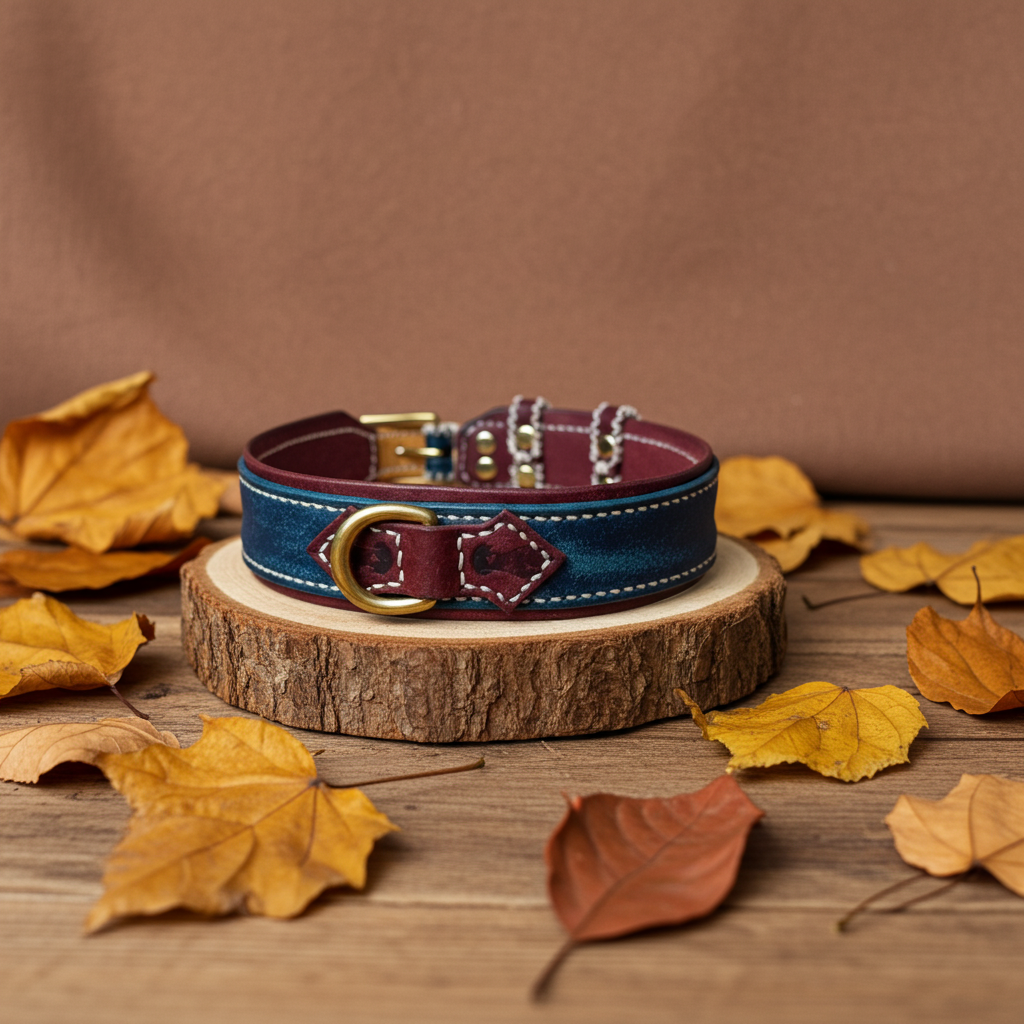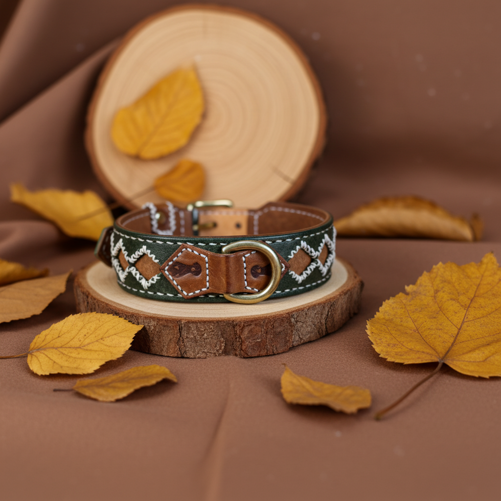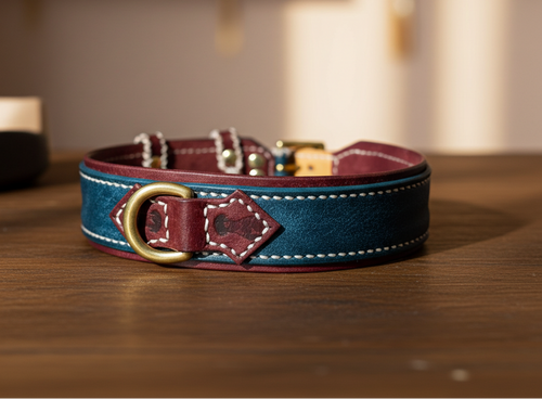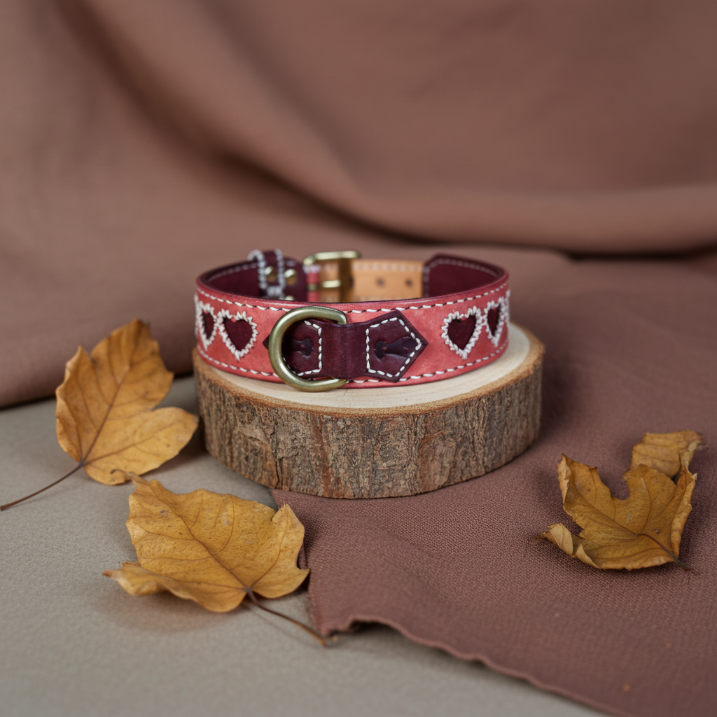 Lavoriamo ogni collare interamente a mano, utilizzando pelle vera conciata al vegetale e hardware in ottone massiccio.